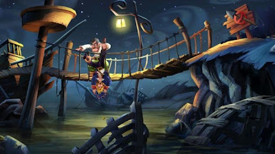 This game is so much better than Monkey Island. That game was fantastic, with a great script, but this one is even better. There are more Islands to explore, more characters, and more puzzles. The game is split up into 4 chapters, with the search for the map to Big Whoop in chapter 2 comprising the majority of the game. Point and click for those who don't know basically means (in the original at least) you control your character by clicking where you want him to go. There are commands at the bottom of the screen such as Pick Up, Push, Talk To etc with which you can interact with the objects, people, and locations of the game world. For the remake the commands are all hidden out of sight, brought into play via the shoulder buttons on the controller, and Guybrush can be moved around more easily via the D-Pad or left analogue stick.
